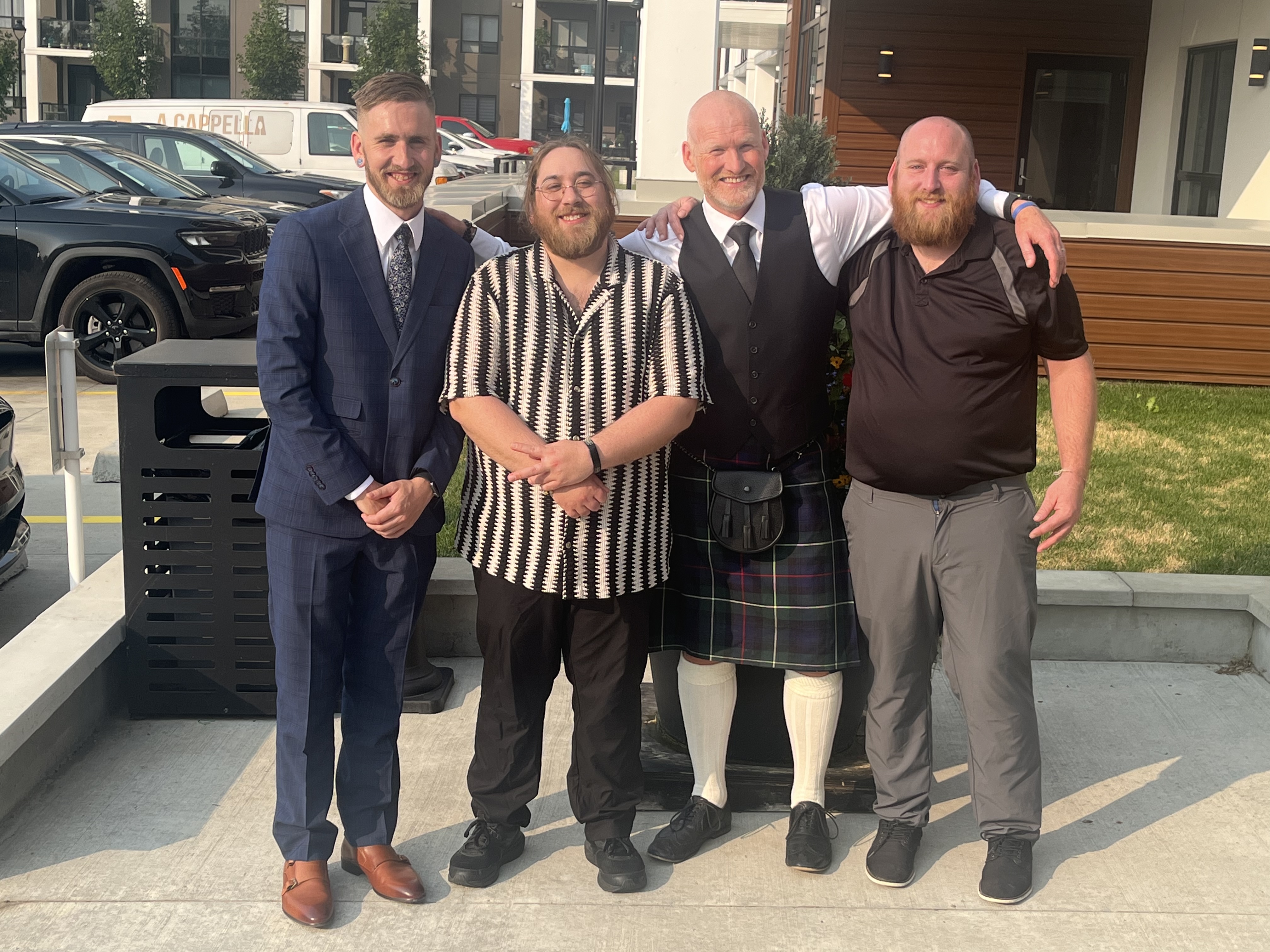 During his school years, Angus was never fond of the school part. It got slightly better when he was diagnosed with a learning disability, allowing him some different strategies on how to learn. Out of school though, time with friends and family were always a highlight in his life. Shinny at the rink, backyard fires, time with his bros, family get togethers were just some of Angus’s fond memories.