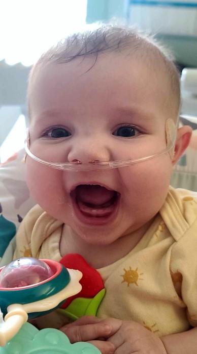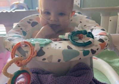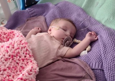 When Brynlee was three days old, she had her first open heart surgery. It was a successful surgery and she recovered well. However, during the surgical procedure, she suffered damage to her right vocal cord and right diaphragm nerve. In addition to having difficulty breathing due to only one side of her diaphragm moving, she was also unable to drink her entire bottle because of the risk of silent aspiration so she needed to be fed mostly through an NG tube. We also had extreme difficulty weaning her from oxygen during this recovery time and there were few answers as to why. We were sent home with her on oxygen but that lasted only one week. During a routine cardiologist checkup, we discovered that Brynlee’s oxygen saturations had been in the 60s which resulted in her being readmitted to the Stollery. Days later she went in for her second open heart surgery as the surgeon needed to upsize the Norwood sano (a shunt delivering blood to her body) and to widen her pulmonary arteries with artificial tissue as they were narrowed. Brynlee came out of this operation better than she had ever been and was successfully able to wean off oxygen completely. We were able to go home with her after a week of recovery.