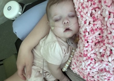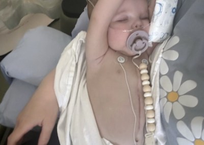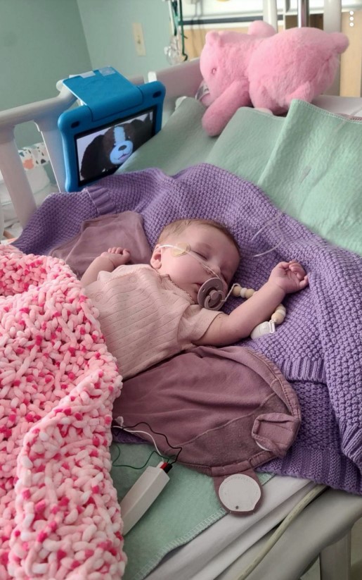 We had a heart catheterization booked for her as she was now needing her next surgery, the Glenn, which is typically done around the 4–6-month mark. We went in that morning for our appointment, but things took a turn for the worse. While waiting for her heart cath, Brynlee spiked an extremely high fever and was agitated and lethargic. We canceled our cath procedure and were readmitted into the Stollery. After many tests, it was discovered that Brynlee had a UTI that turned into sepsis. She began an aggressive course of antibiotics to treat the sepsis. She also started having oxygen desaturations which was a clear sign she needed her next surgery. We opted out of doing the cath because of the risks given with her having an infection and agreed to the less invasive testing. We were told that this next surgery was going to be amazing; that she would be more stable and have a much better life. We couldn’t wait for this – we couldn’t wait for our baby to FINALLY be just that, a baby. Little did we know, this would be the worst surgery yet.