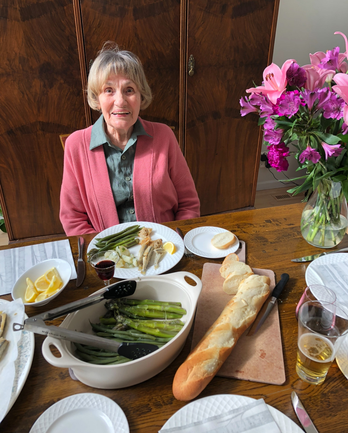 I always remember your mom through your dining room window sitting reading the paper at the table, taking in the day. I also think of her every time we have her lemon icy squares! Annie was a beautiful personality and we will remember her fondly.